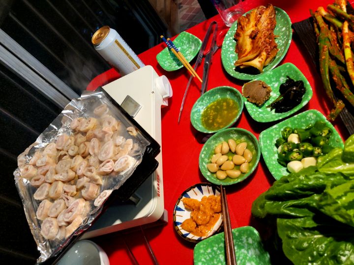 베란다에서 빨간책상 펴고 고기궈먹으면