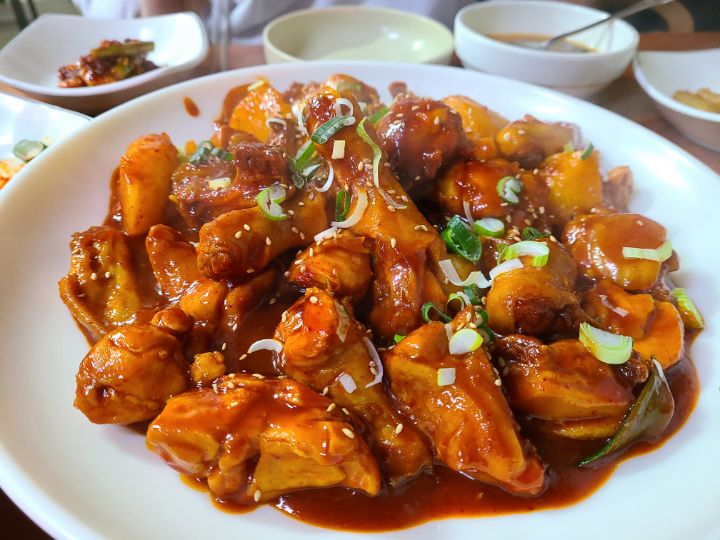 여기 닭볶음탕은 달짝지근한데도....