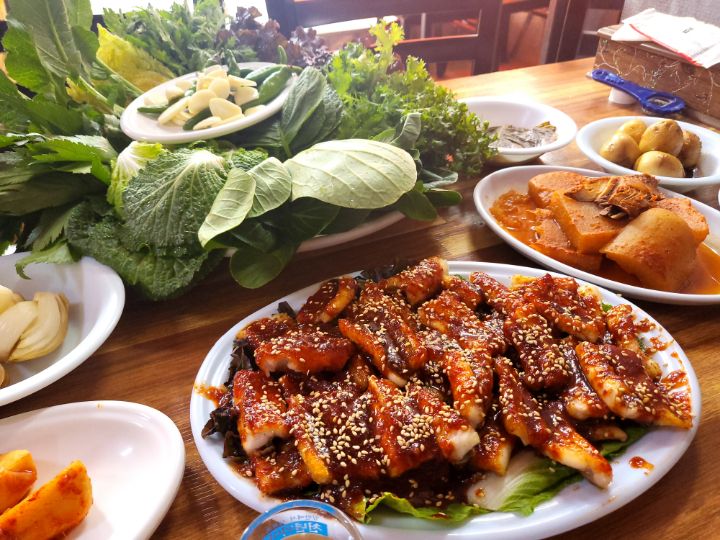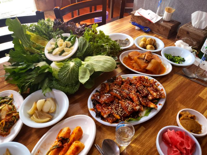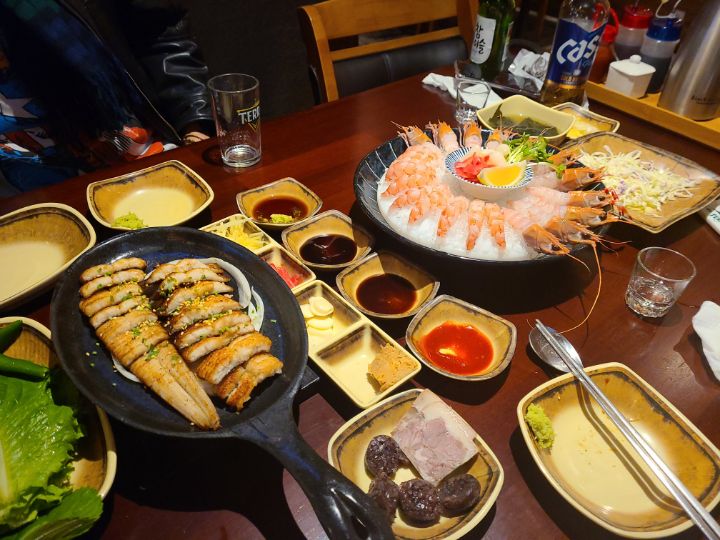 바닷장어에 저 푸짐한 쌈을 보라...