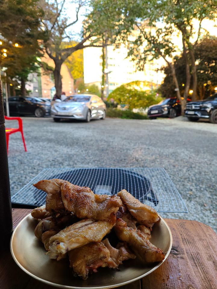 야외에서 숯불에 토종닭 닭구워먹기~~~