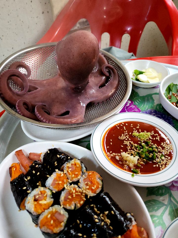저 숙회를 당근김밥이랑 초장에 찍어 같이 먹는거야