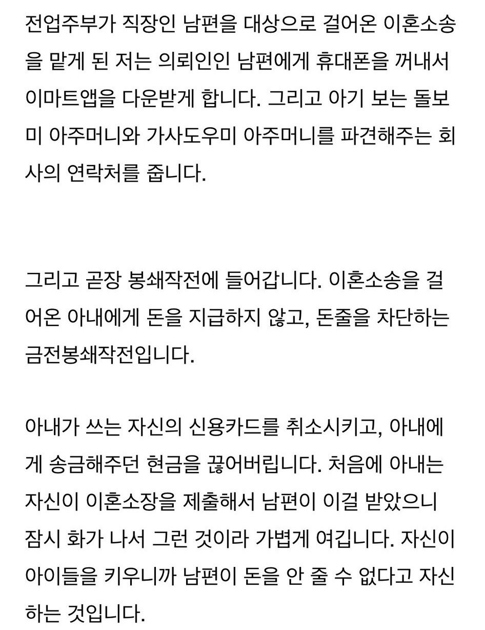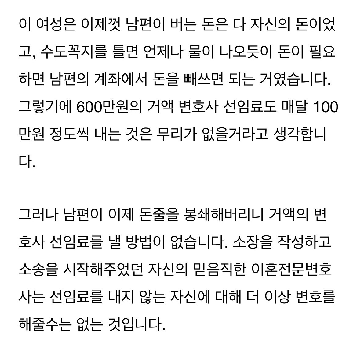 동일한 변호사가 전업주부를 의뢰인으로 두고 쓴 글