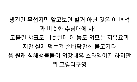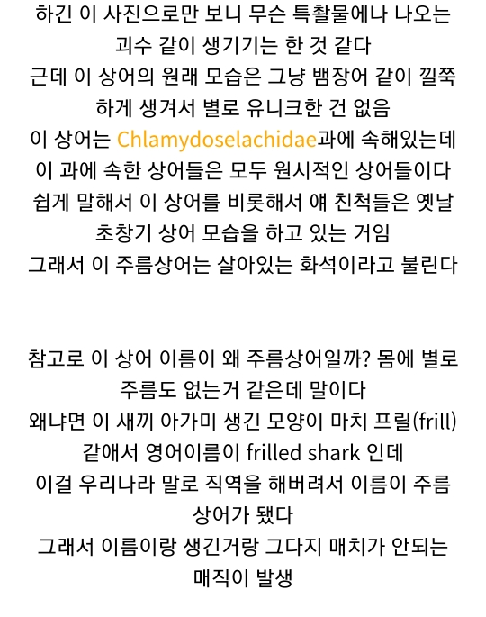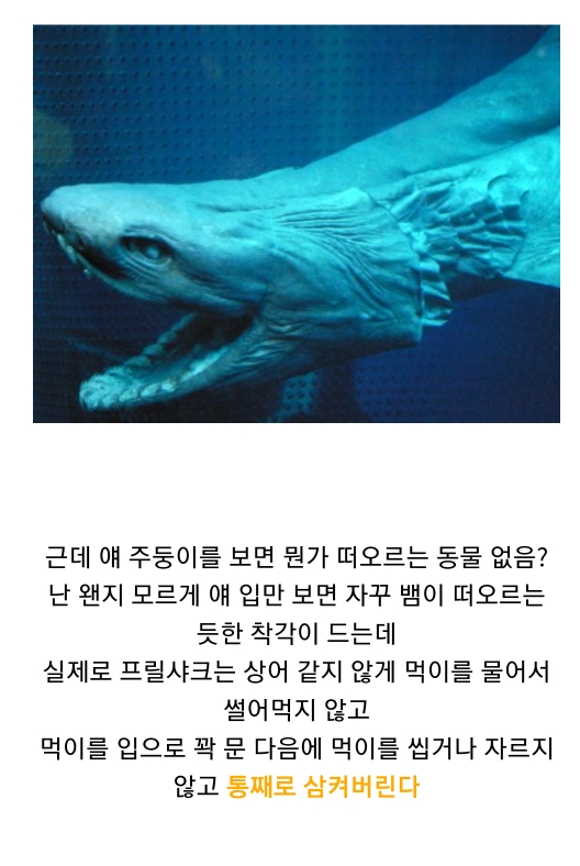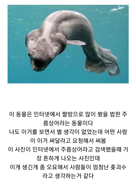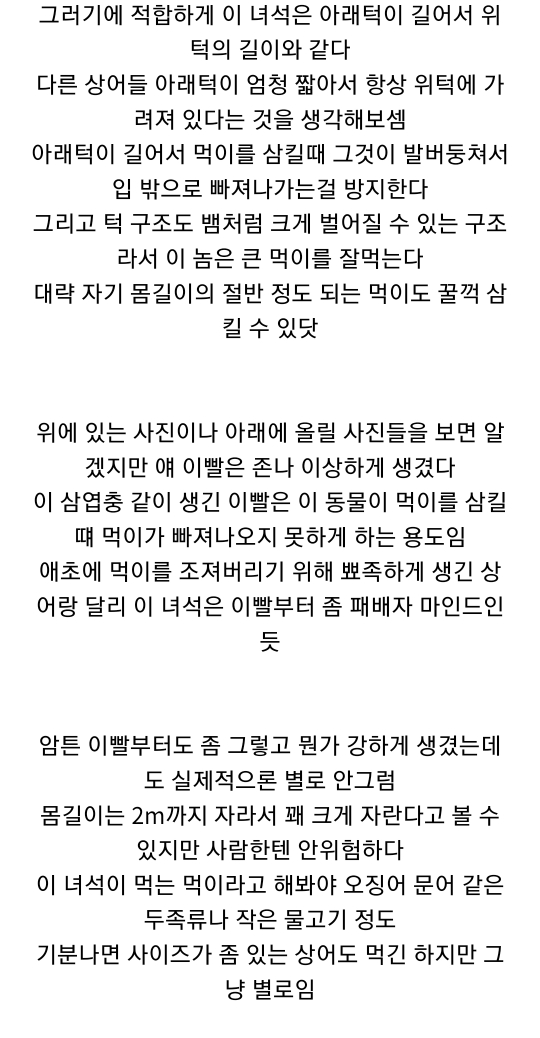 작성자올해꼭로또1등당첨될겁니다 작성시간 23.04.30 위에 사진보면 좀 큰 갈치같이 생겼네ㅋㅋ글고 이빨이 한번 물리면 절대 빠져나가진 못 할것 같음ㄷㄷㄷ