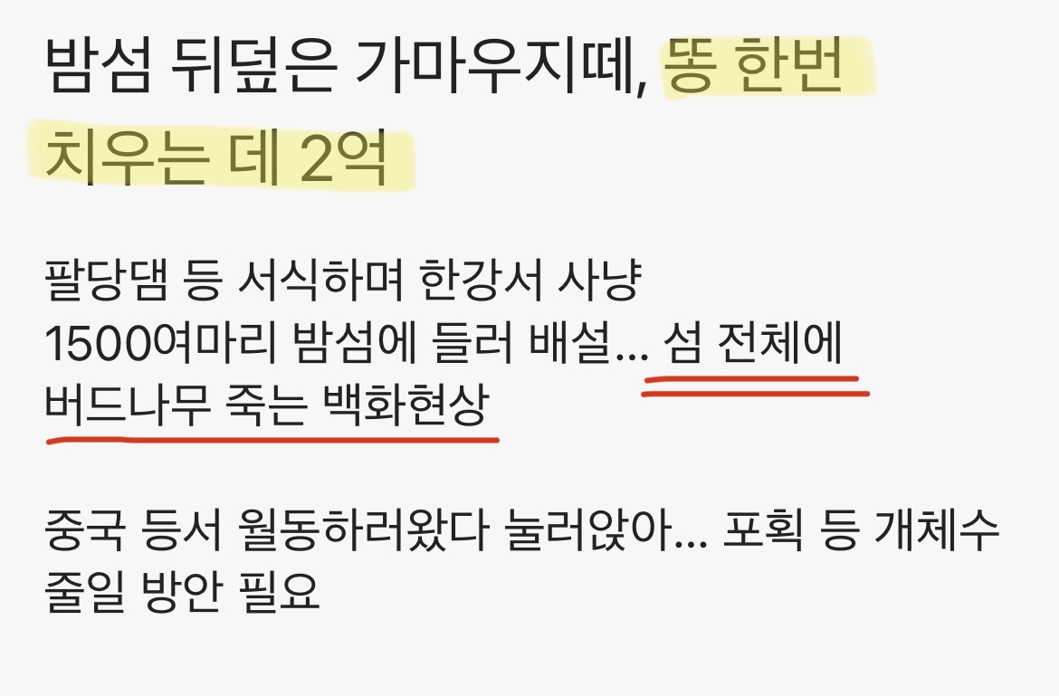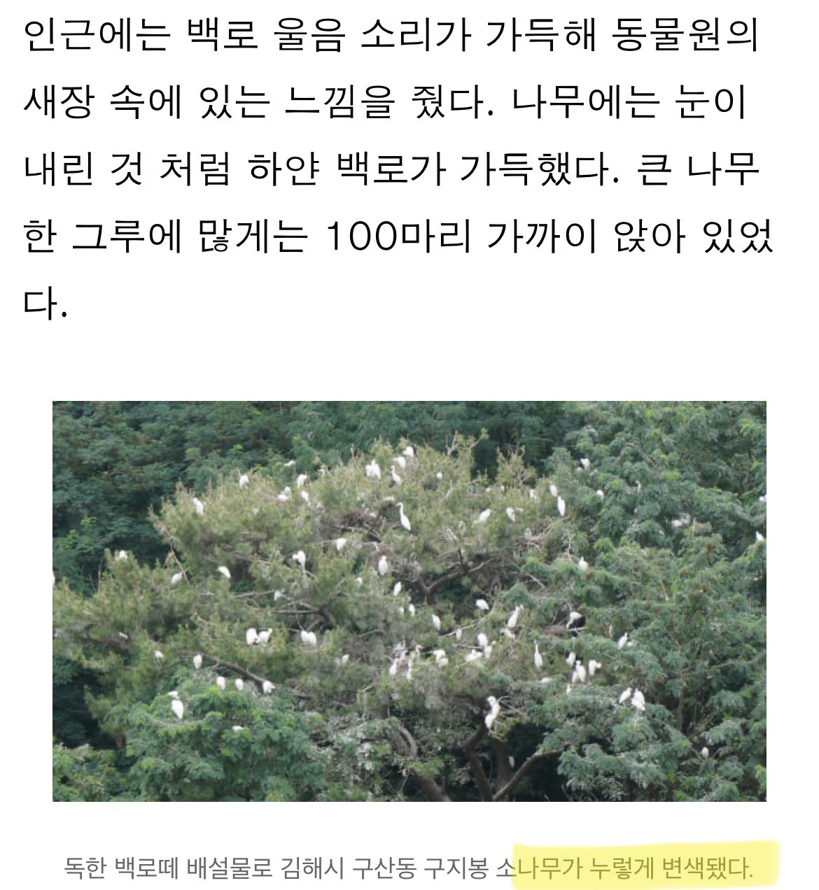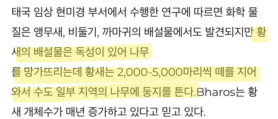 나무에 새똥이 닿으면 나무가 하얗게 백화되서 죽음