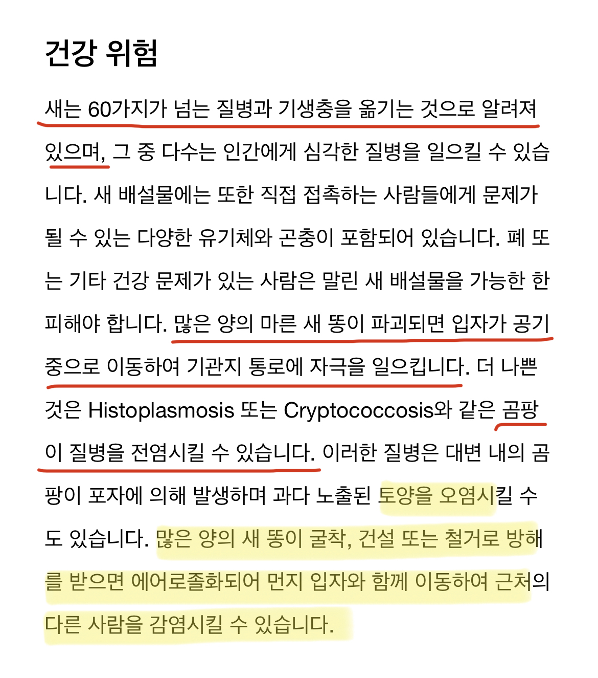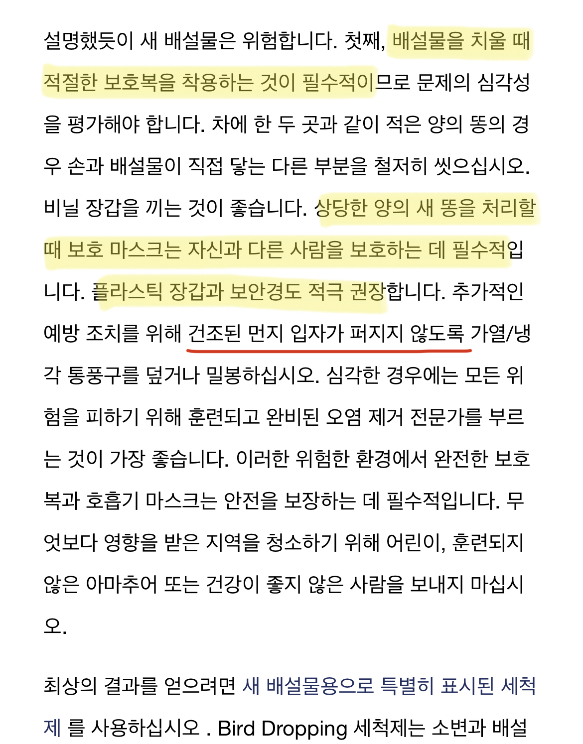 새의 분변은 독성이 강하기 때문에