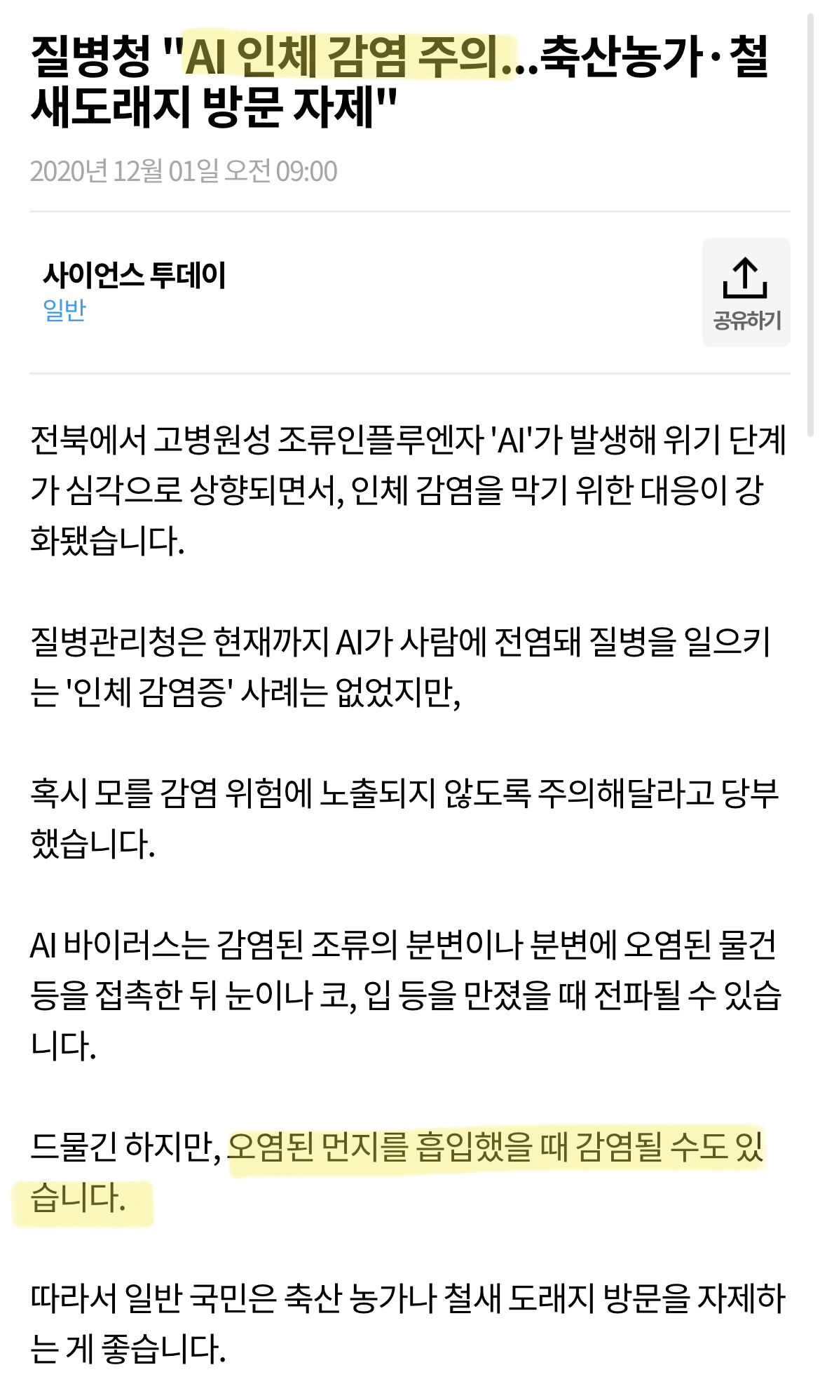 마른 새똥을 제거할 때의 분변이 에어로졸화 되어