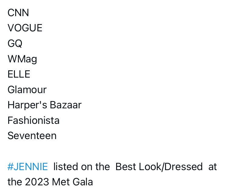 Harper's BAZAAR Hong Kong IG : #JENNIE at The 2023 Met Gala