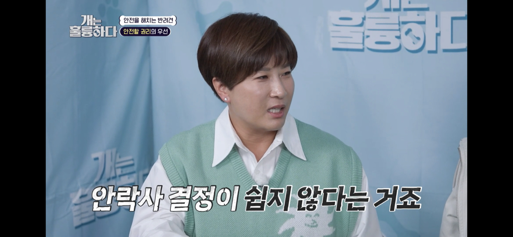 안락사 법으로 시행하되 (안락사 당하는 개의) 주인들이 마음아파하는 건 뭐라고 하면 안 된다. (어쨌든 가족이니까)“