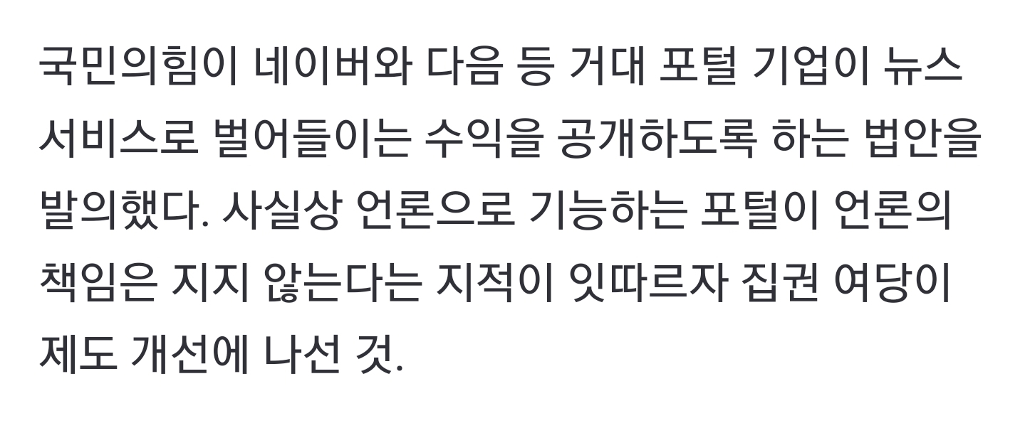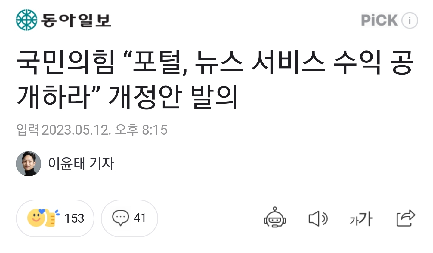 [스크랩] [여시뉴스데스크]국민의힘 “포털, 뉴스 서비스 수익 공개하라” 개정안 발의 작성자김뽁싸랑|작성시간23.05.12|조회수564 목록 댓글 2 글자크기 작게가 글자크기 크게가 https://n.news.naver.com/article/020/0003497072?sid=100 다음검색 스크랩 원문 : 이종격투기 현재 게시글 추가 기능 열기 북마크 공유하기 신고 센터로 신고 댓글 댓글 2 댓글쓰기 답글쓰기 댓글 리스트 작성자“서로 존중, 함께 배려” | 작성시간 23.05.12 네이버야 정신차리고 그냥 좆중동 버리자 이참에 작성자성차별기업 신한카드 | 작성시간 23.05.13 이거 네이버 때리려고 그러는 거 같은뎈ㅋ 기사 검열하라고 댓글 전체보기