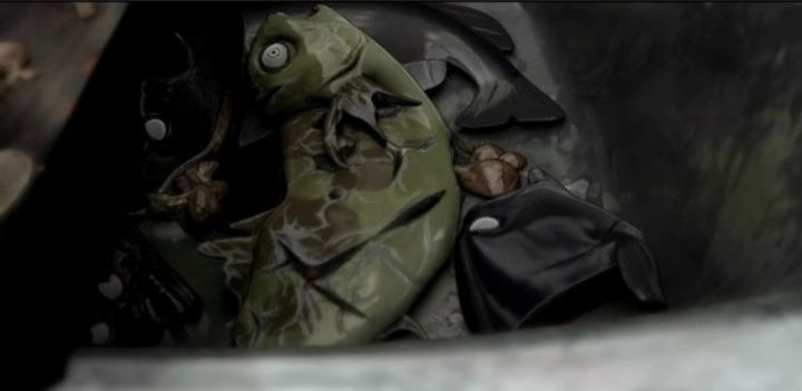 생선 시체들 사이에 주인이 놀래미의 시체를 버리는 모습이 연속적으로 비춰진다.