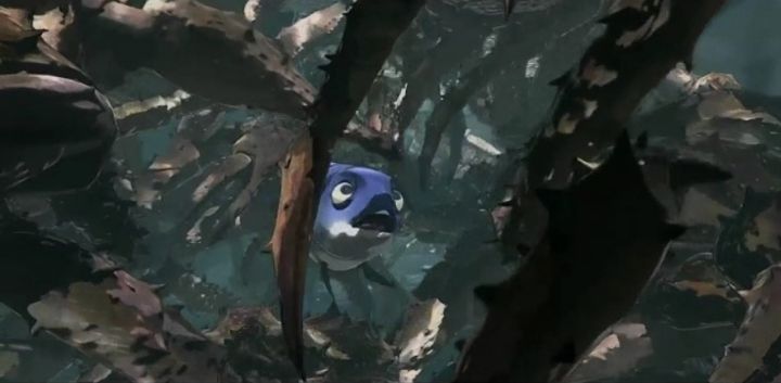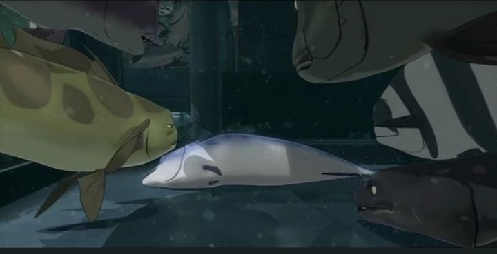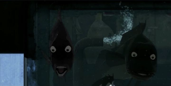 잠시 정신을 잃었다 깨어난 파닥파닥의 가물가물한 시선 안에 자그마한 금붕어들이 “여기는 관상용 수족관이야. 식용 따위가 올 곳이 아니라고!”라며 화를 내는 모습이 보인다.