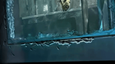 파닥파닥은 꿈과 달리 수족관에 갇힌것을 깨닫자마자 바로 뛰어넘어 탈출을 시도한다.