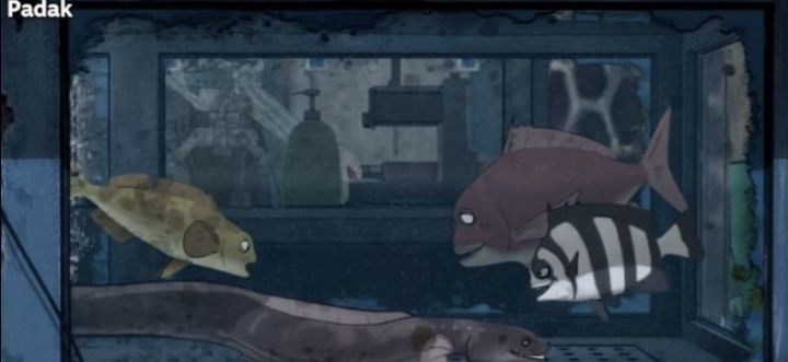 그 순간 파닥파닥은 “이 수족관에 들어온 이상 너희는 모두 죽은 거야!”라는 올드 넙치의 말을 떠올리게 되고, 굶주림에 미쳐있었던 이성이 돌아온다.