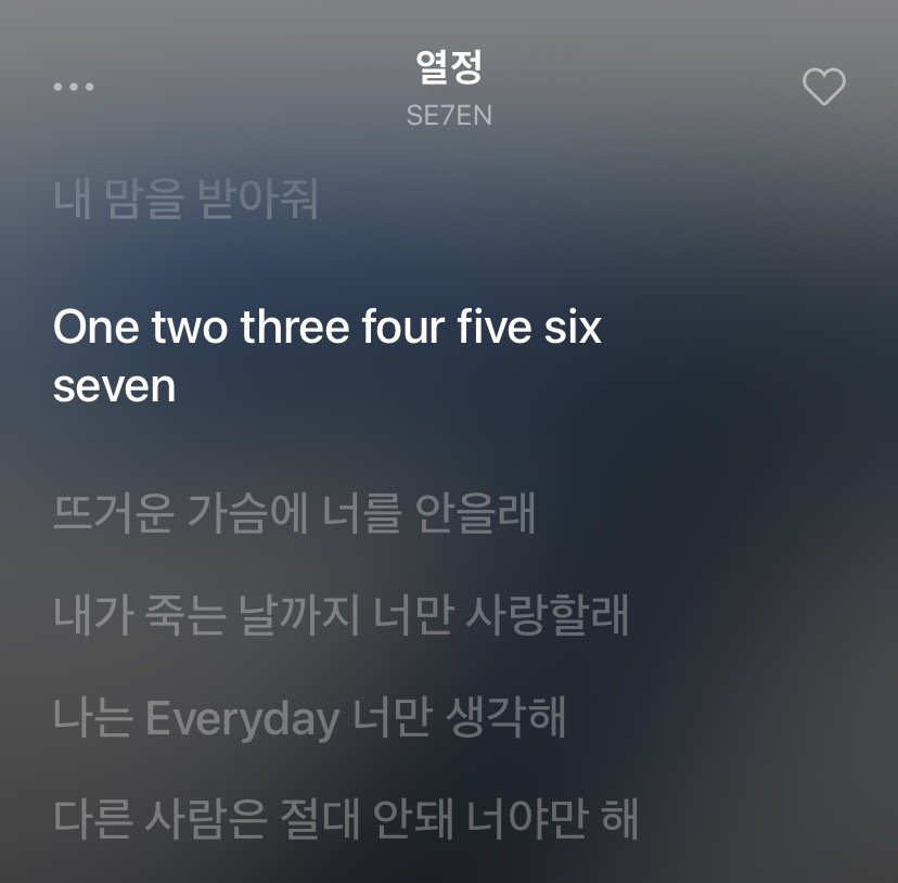 [흥미돋]“원 투 쓰리 포 파이브 식스 세븐”의 다음 가사는?? 작성자내 별명: 먹구름(먹고 구름)|작성시간23.05.15|조회수31,784 목록 댓글 699 글자크기 작게가 글자크기 크게가 출처 : 여성시대 (크런치초키포키) 미방1. 세븐 - 열정 (2004)뜨거운 가슴에 너를 안을래2. 아이브 - 일레븐 (2021)You make me feel like eleven3. 10CM, BIG Naughty - 딱 10CM만 (2022)8 9 10 딱 10CM만+ 카라 - 미스터 (2009)미스터는 식스까지였단 사실,,,! 다음검색 현재 게시글 추가 기능 열기 북마크 공유하기 신고 센터로 신고 댓글 댓글 699 댓글쓰기 답글쓰기 댓글 리스트 작성자나도 언젠가는 | 작성시간 23.05.17 에잇 외친거 나뿐이구나... 작성자꽅향기 | 작성시간 23.05.17 뜨꺼운 가쓰메 작성자닭강정존맛탱 | 작성시간 23.05.18 라라라라라라 작성자맹랑젓 | 작성시간 23.05.19 유멬미삘라잌일레븐 작성자벚꽃이벌써피다니 | 작성시간 23.05.21 뜨거운 가스메 댓글 전체보기