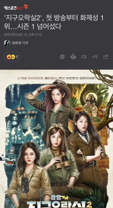 15일 굿데이터에 따르면 5월 2주차에 발표된 K-콘텐츠 TV-OTT 통합 비드라마/쇼 부문 1위에 tvN ‘뿅뿅 지구오락실2’(이하 '지락실2')가 올랐다.