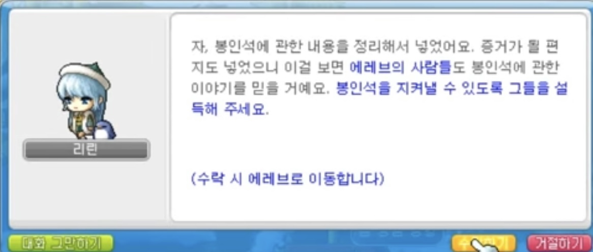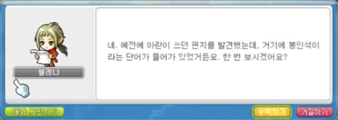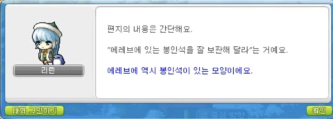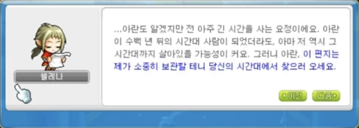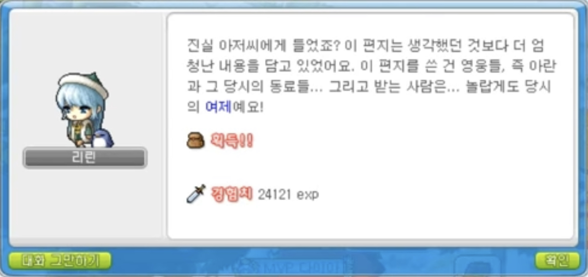 그 당시 메이플 월드의 여제였던 아리아에게 보낸 편지였음
