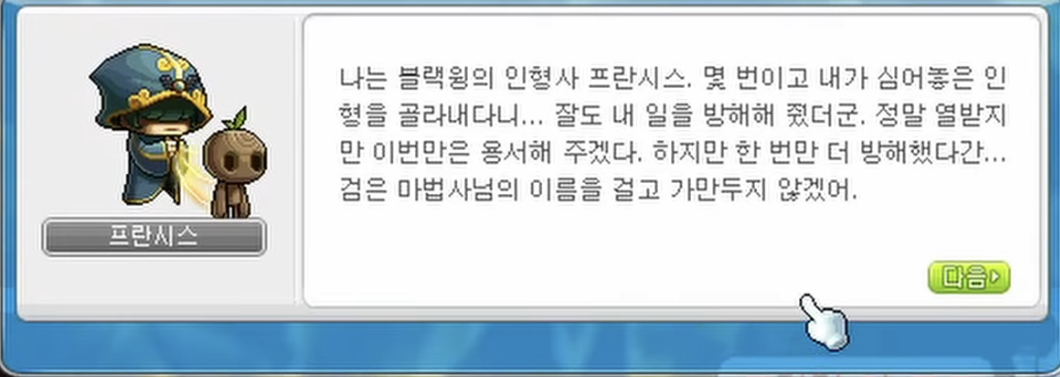 저 현상의 원인인 블랙윙의 인형사 프란시스의 존재를 알게 됨