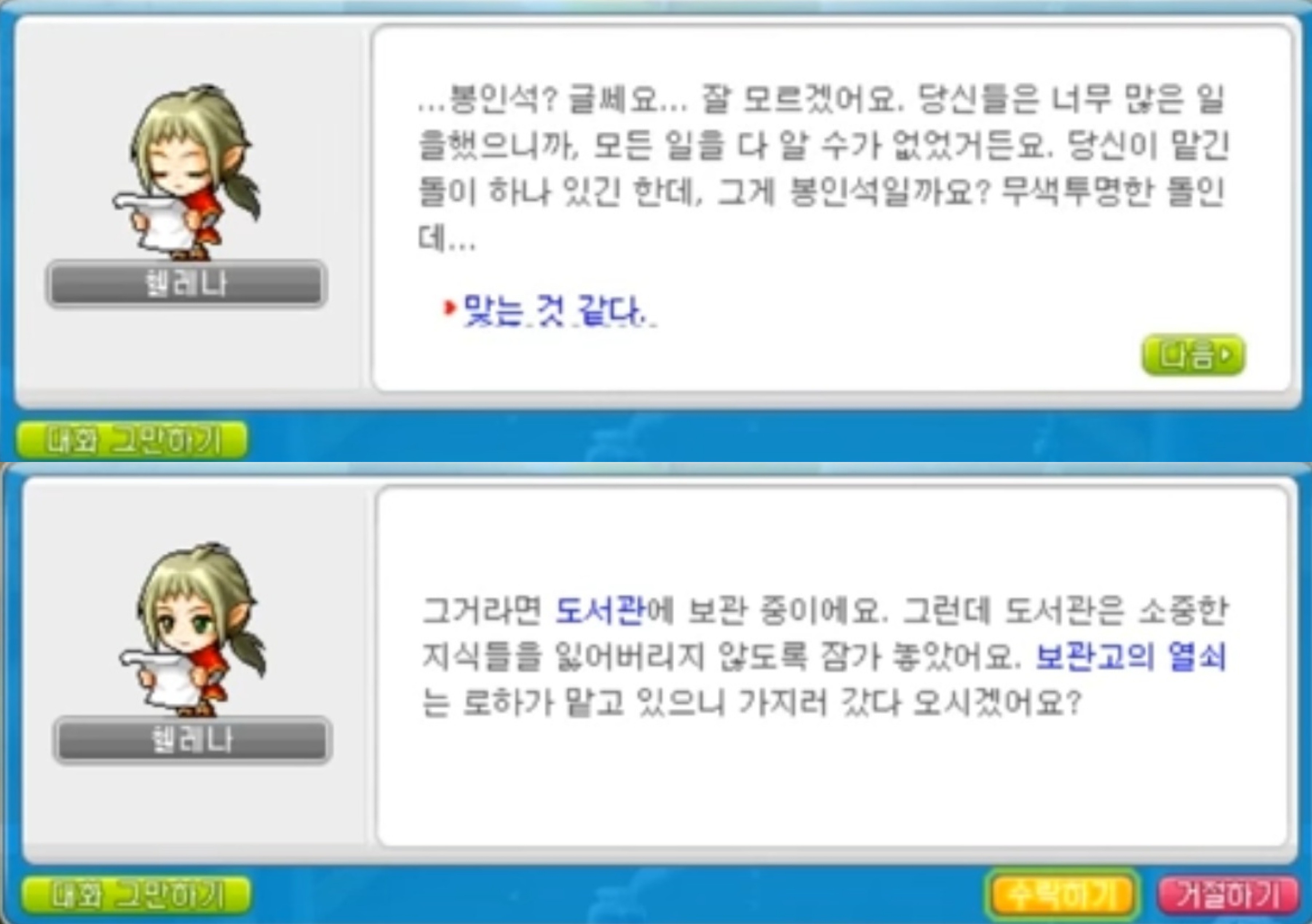 그게 봉인석인거 같다면 그 돌은 도서관에 보관하고 있으니 가보라고 알려줬음