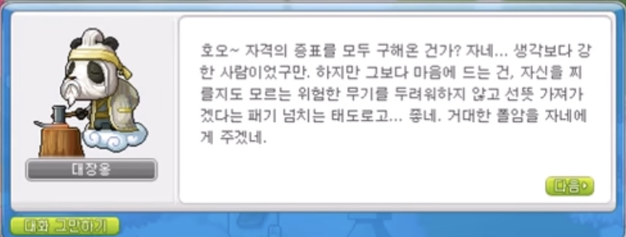 먼 과거에 지가 저 폴암을 휘두르고 다녔던 영웅이었다는 사실을 그 때 깨닫게 됨.