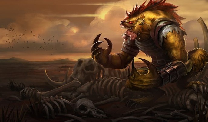 녹서스 남부에 사는 성질 고약한 술꾼. 수년동안 일개 군단이 마시고도 남을 술을 혼자 쳐먹음. 덕분에 마력이 생김.