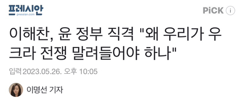 [여시뉴스데스크]이해찬, 윤 정부 직격 "왜 우리가 우크라 전쟁 말려들어야 하나" 작성자소리앙|작성시간23.05.27|조회수629 목록 댓글 1 글자크기 작게가 글자크기 크게가 출처 : https://naver.me/GXRBfS7k이해찬, 윤 정부 직격 "왜 우리가 우크라 전쟁 말려들어야 하나"이해찬 전 더불어민주당 대표가 "왜 우리가 우크라이나 전쟁에 말려들어가야 하나"라고 윤석열 정부의 외교 정책을 비판했다. 이 전 대표는 26일 충남 아산터미널웨딩홀에서 열린 당원 전국순회n.news.naver.com전문출처 다음검색 현재 게시글 추가 기능 열기 북마크 공유하기 신고 센터로 신고 댓글 댓글 1 댓글쓰기 답글쓰기 댓글 리스트 작성자앙쿠마 | 작성시간 23.05.27 맞지 왜나대서 껴들어기사 댓글ㅋㅋㅋ 입만 나불거리는 한남새끼들 댓글 전체보기