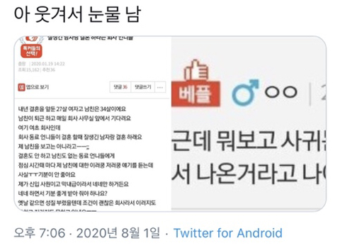 작성자계란주먹밥 작성시간 23.05.27 여자들 진짜 왠만하년 사이안좋아도 남자들보고 못생겻다곤 안해....진짜 어지간히못생겻나보다
