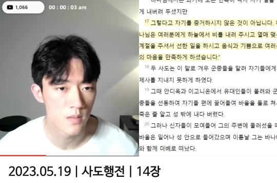 방송 키자마자 동태눈으로 랩하듯이 성경 10분 읽다가