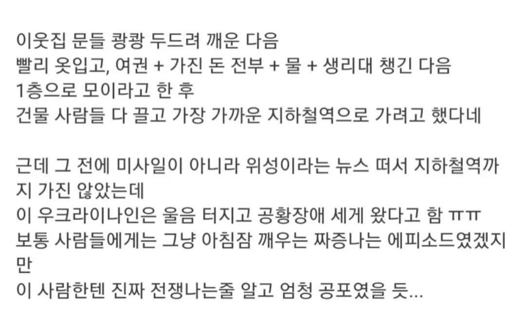 [칵.cxxxx]한국에 거주하고 있는 우크라이나인이 얼마 전 재난 문자 받고 한 행동 작성자서한솔|작성시간23.06.02|조회수6,749 목록 댓글 9 글자크기 작게가 글자크기 크게가 출처 : https://www.instagram.com/p/Cs-DjmCS7rO/?igshid=MzRlODBiNWFlZA==씨발새끼 진짜 다음검색 현재 게시글 추가 기능 열기 북마크 공유하기 신고 센터로 신고 댓글 댓글 9 댓글쓰기 답글쓰기 댓글 리스트 작성자양쯔강돌고래류재숙 | 작성시간 23.06.02 어떡하냐. 저분 마음 어떻게 달래... 너무 미안하다 ㅠㅠ... 작성자노랑파프리캬 | 작성시간 23.06.02 얼마나 무서웠을까.. 작성자STANㄴEY | 작성시간 23.06.02 세상에...몆명이 피해를 보는거야 작성자야오나 | 작성시간 23.06.02 아휴 어떡해.... 작성자파머조지 | 작성시간 23.06.02 아휴ㅜㅜㅜㅜㅜㅜㅜ어떡하냐 댓글 전체보기