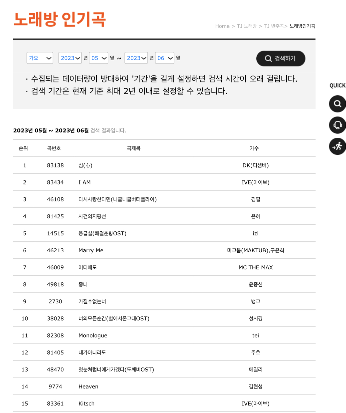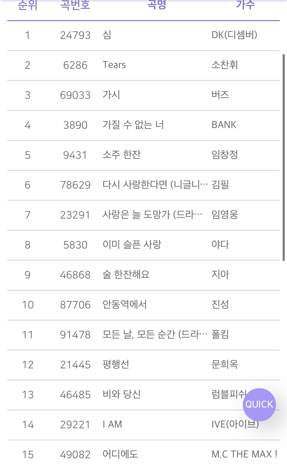 금영 노래방 차트