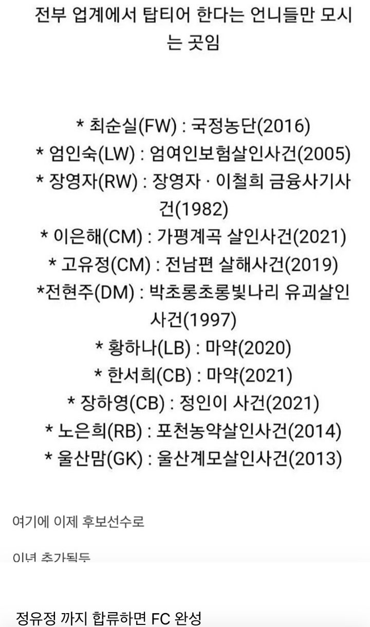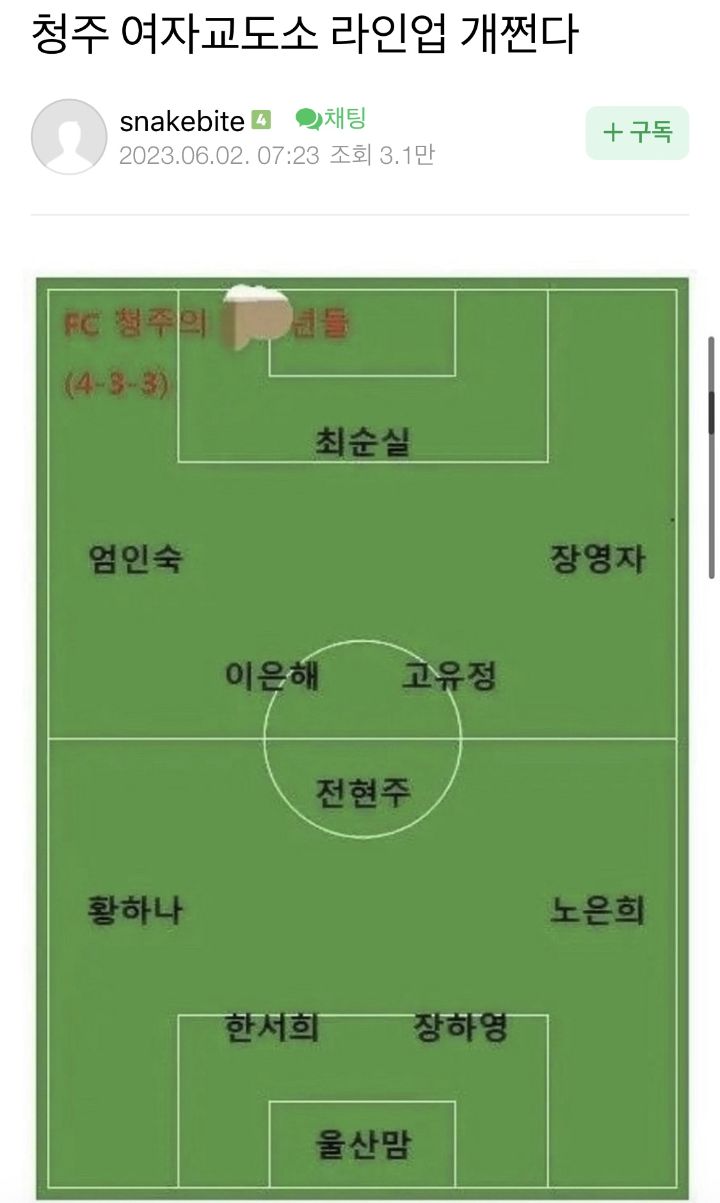 [스크랩] [기타](여자들 욕하는 일에는 참 부지런한 사람들) 청주 여자교도소 라인업 작성자(본인닉네임)호우|작성시간23.06.03|조회수8,440 목록 댓글 34 글자크기 작게가 글자크기 크게가 벌써 이런 거 만들어서 뿌림남자는 셀 수도 없이 많아 기억조차 못하겠는데 .. 다음검색 스크랩 원문 : 비공개카페 현재 게시글 추가 기능 열기 북마크 공유하기 신고 센터로 신고 댓글 댓글 34 댓글쓰기 답글쓰기 댓글 리스트 작성자Rachel Karen greene | 작성시간 23.06.03 겨우 저만큼 밖에 없네 작성자호롱호롱호롱박 | 작성시간 23.06.03 마약ㅋㅋㅋㅋㅅㅂ 작성자행정안전부 | 작성시간 23.06.03 남자는 걍 운동장에 모아 놓기도 힘들겠네;; 관중석까지 채워야지 작성자델리팜 | 작성시간 23.06.03 하여튼 돈안드는 뻘짓은 작성자실버타운들어갈건디여 | 작성시간 23.06.04 남자는 마라톤해야데잖아 댓글 전체보기