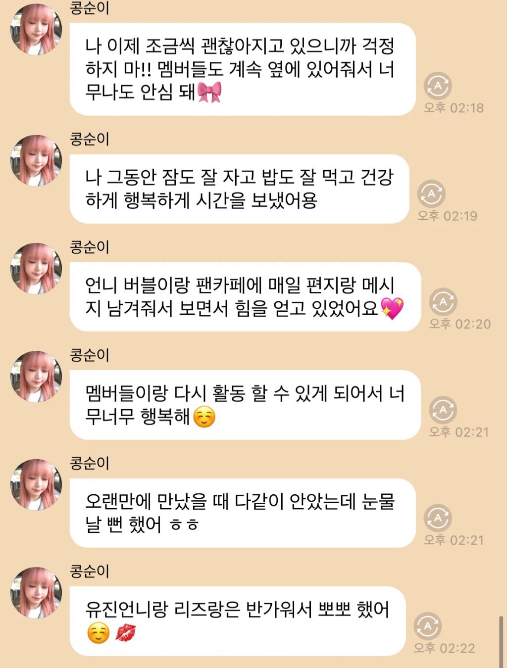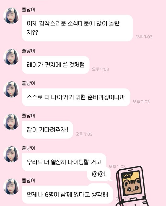 작성자뻐니즈 작성시간 23.06.24 ㅠㅠㅠ 뒤늦게 보고 왔는데 마음이 안좋네.. 다른 멤버들도 너무 부담갖지말고 힘들면 쉬고 충분히 표현하면서 건강하게 활동했으면..