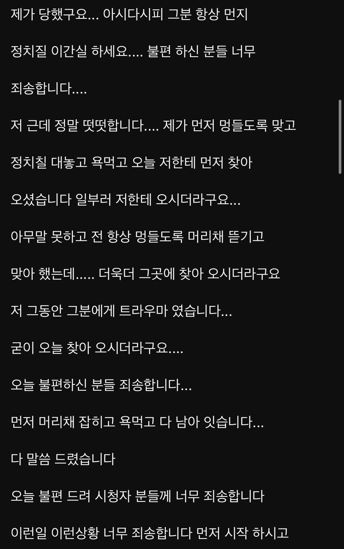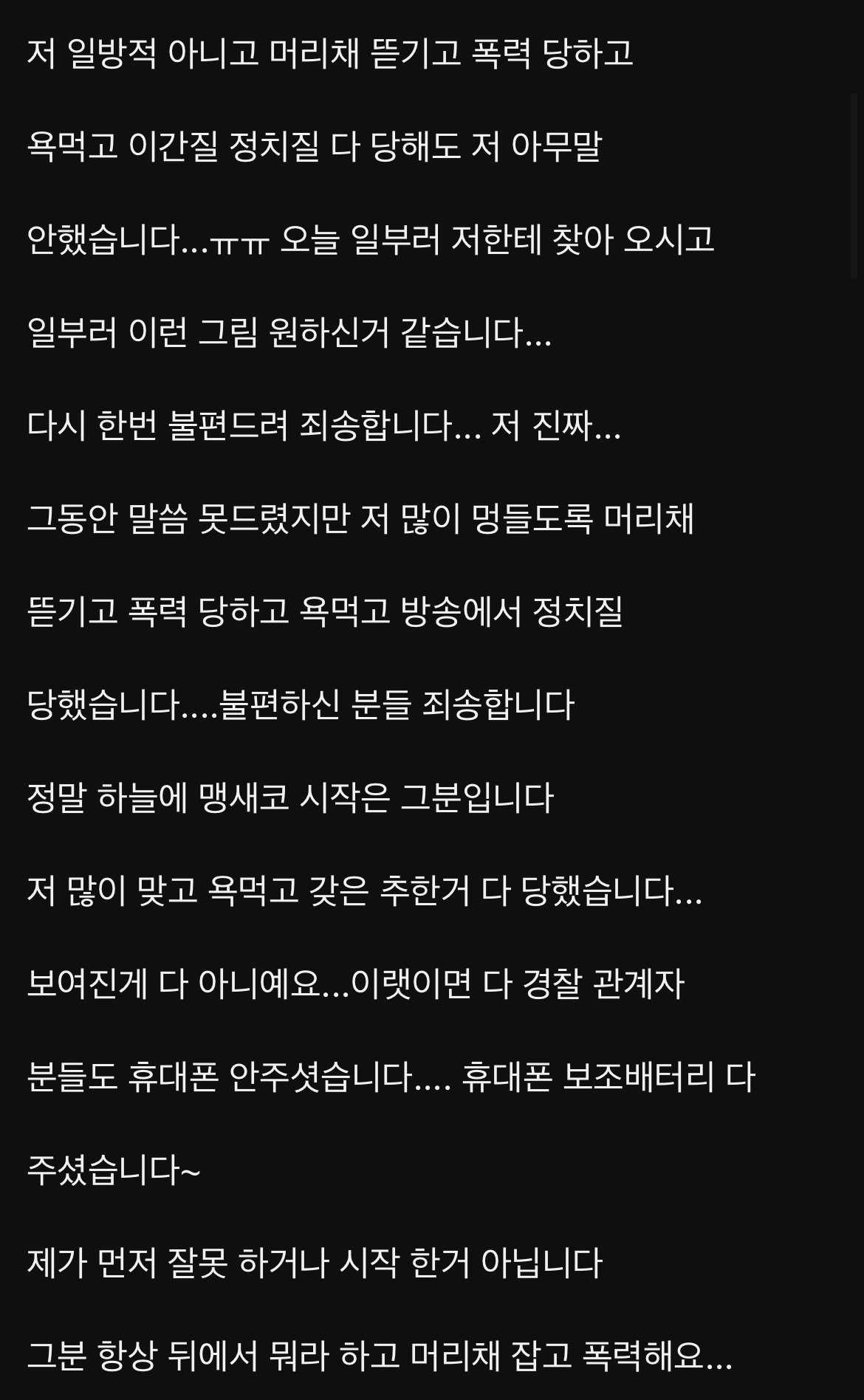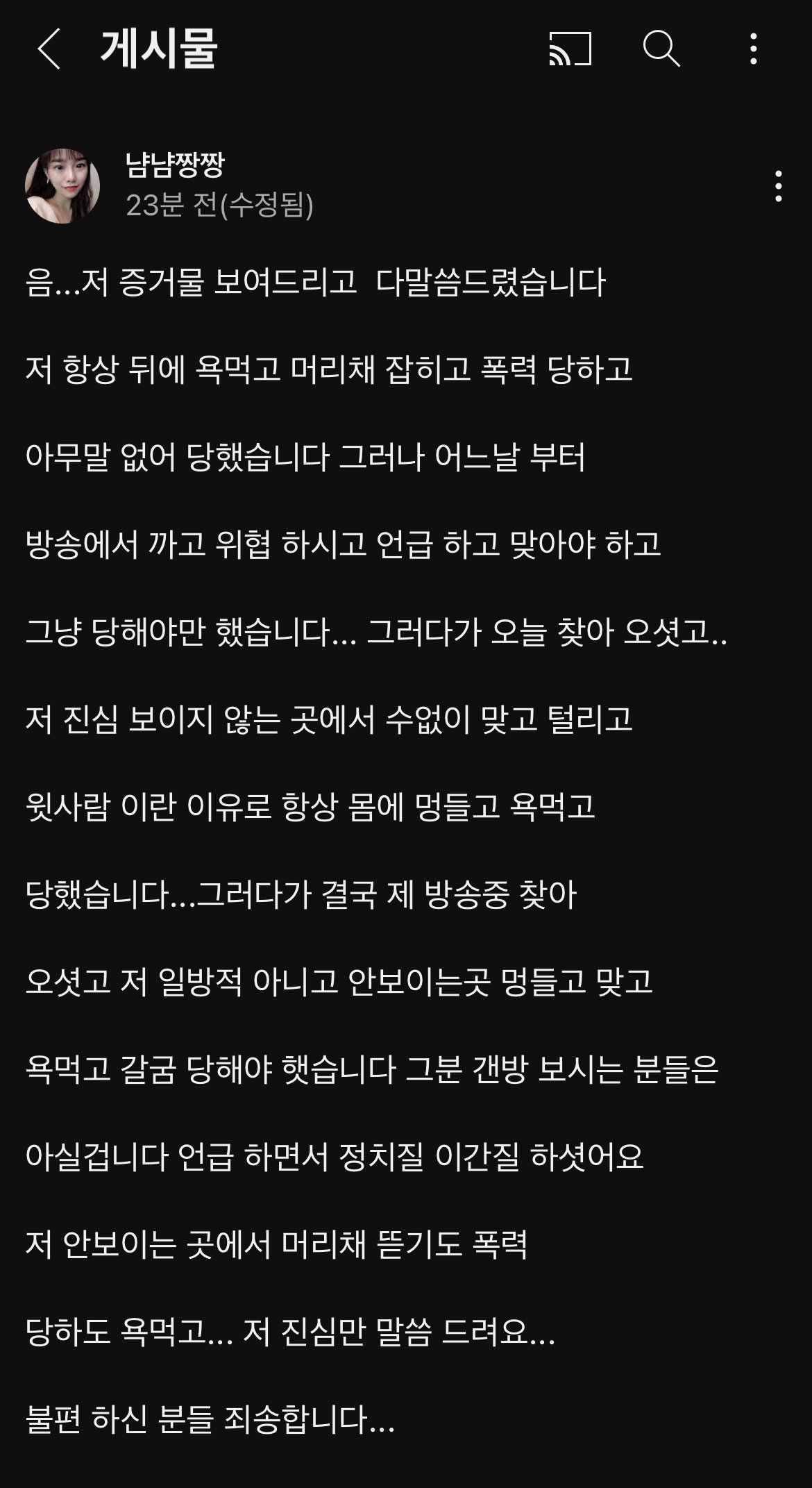 요약: bj냠냠짱짱이 포크로 bj여울 폭행함….