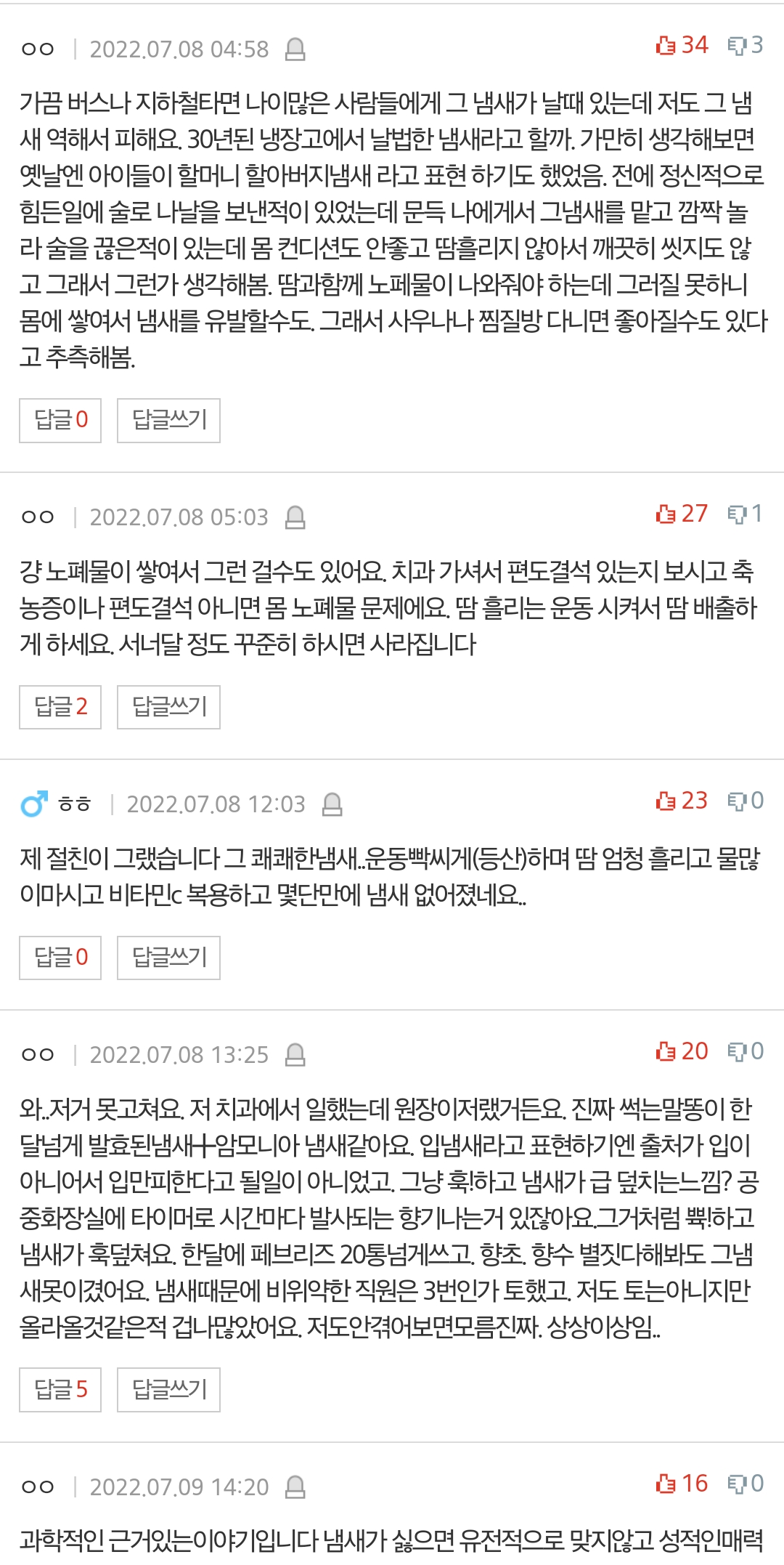 작성자부끄럽지않아 작성시간 23.06.14 맞아. 정말 사우나나 수영장에서 만나는 중년분들은 냄새안나