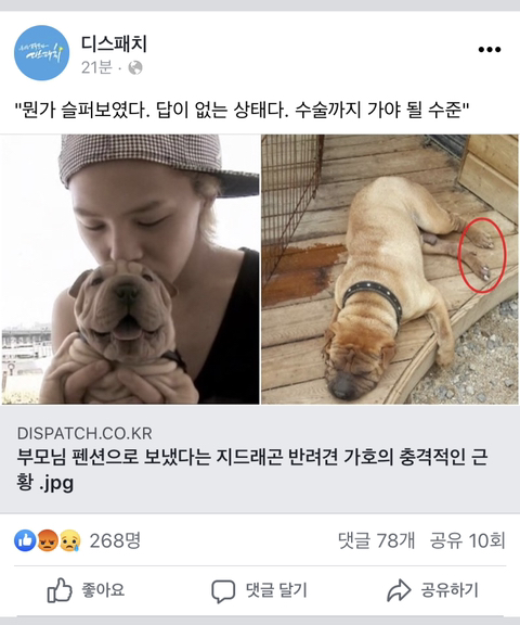 [스크랩] [흥미돋]부모님 펜션으로 보냈다는 지드래곤 반려견 가호의 충격적인 근황(디스패치 뉴스 뜸. 댓글 반응 추가)