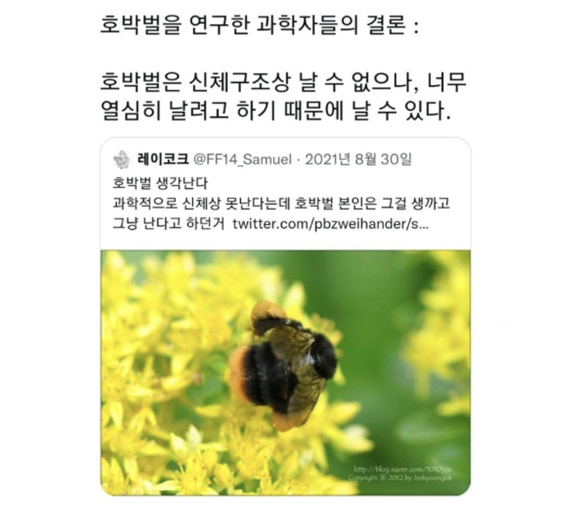 [스크랩] [흥미돋]호박벌이 원랜 못 나는데 열심히 날려고 하기 때문에 날수있다는 글 보고 드는 생각이랑 mbti 말하는 달글