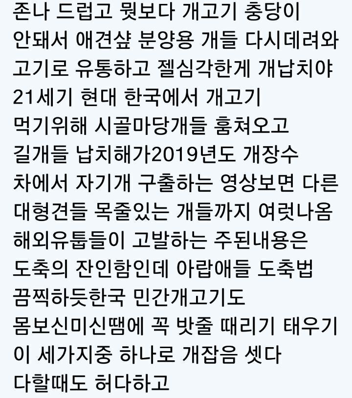 개고기 업주들은 어쩌냐고 이부분 우려하는 사람들 많은데 애초에 죄다 잘못된 유통이야