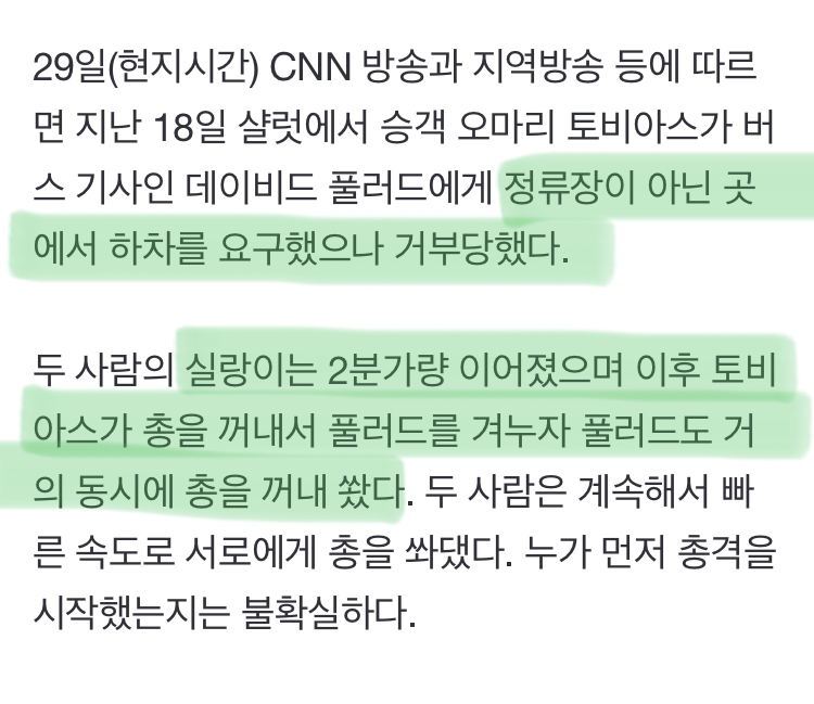 [여시뉴스데스크]“이게 실화냐"… 달리는 버스서 운전기사, 승객 총격전 작성자(본인닉네임).|작성시간23.06.22|조회수2,555 목록 댓글 2 글자크기 작게가 글자크기 크게가 출처: https://n.news.naver.com/article/029/0002803556?sid=104.. 진짜 이게 실화냐… 다음검색 현재 게시글 추가 기능 열기 북마크 공유하기 신고 센터로 신고 댓글 댓글 2 댓글쓰기 답글쓰기 댓글 리스트 작성자금은동금은동실 | 작성시간 23.06.22 어우..; 작성자kataomoi | 작성시간 23.06.22 해고는 됐지만 목숨은 살렸네 총 없었으면 걍 죽었을거아녀.. 미국 진짜 문제있다 댓글 전체보기