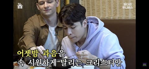 크리스티안(갈색? 반팔티) : 니 아들 아니잖아