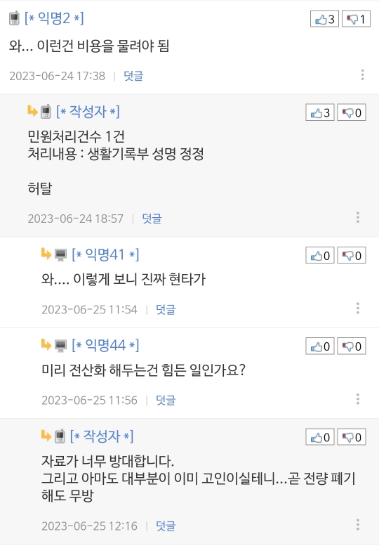 수치로 잡히는 민원은 한 장이지만 그날 진짜 집에 오니 눈앞이 컴컴하더라고요.