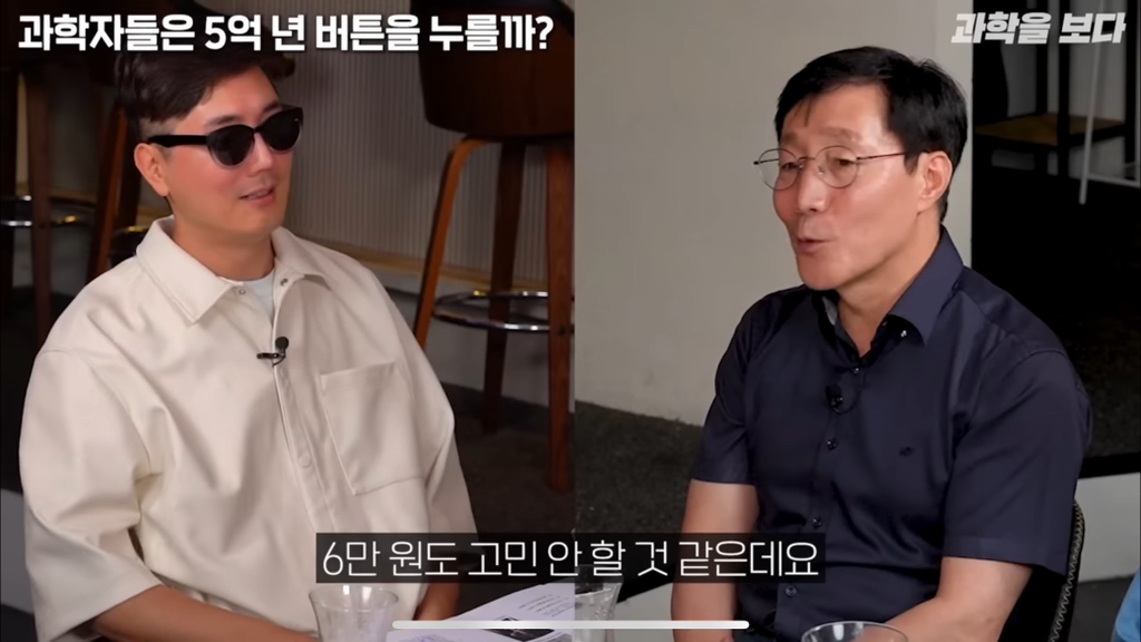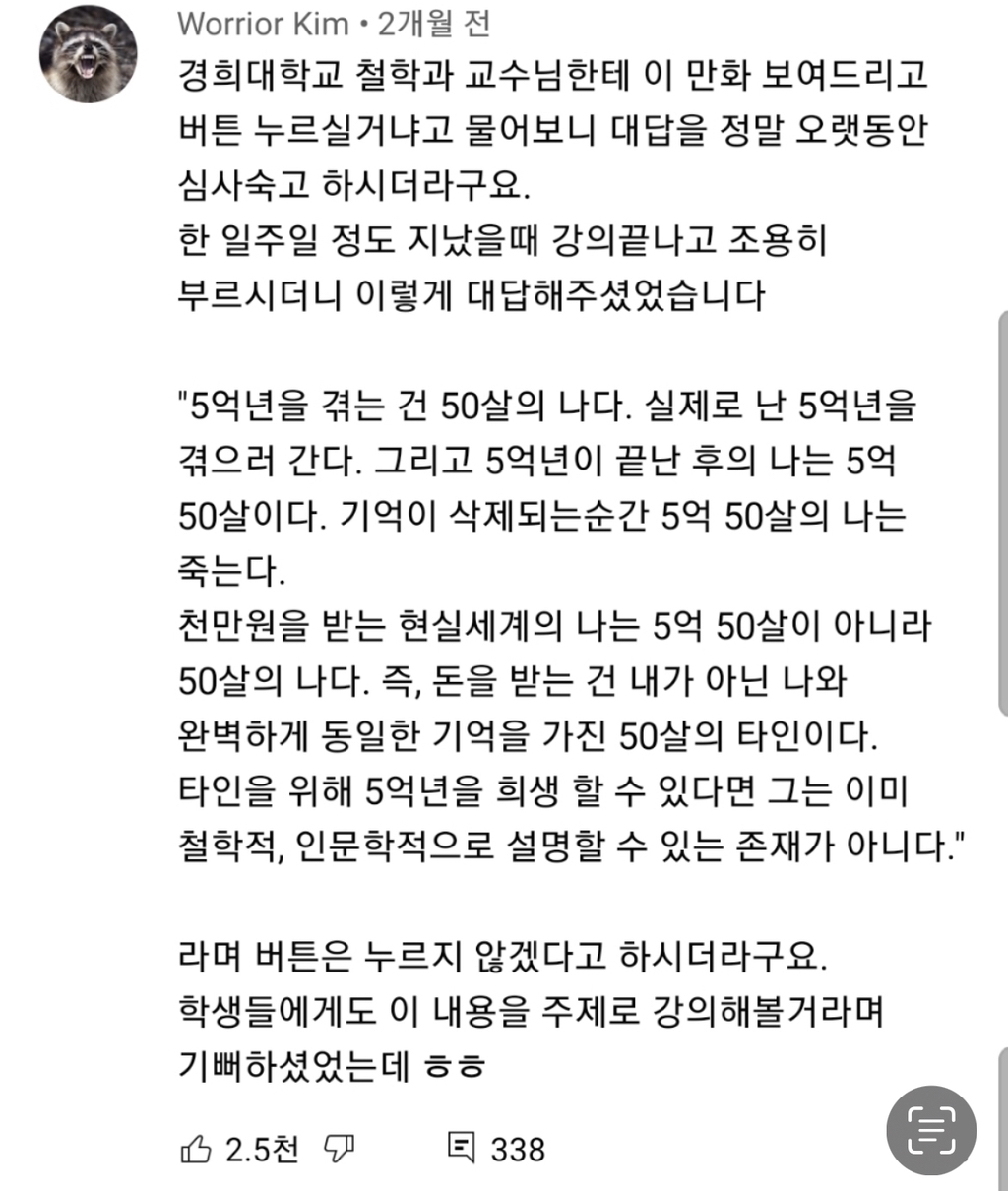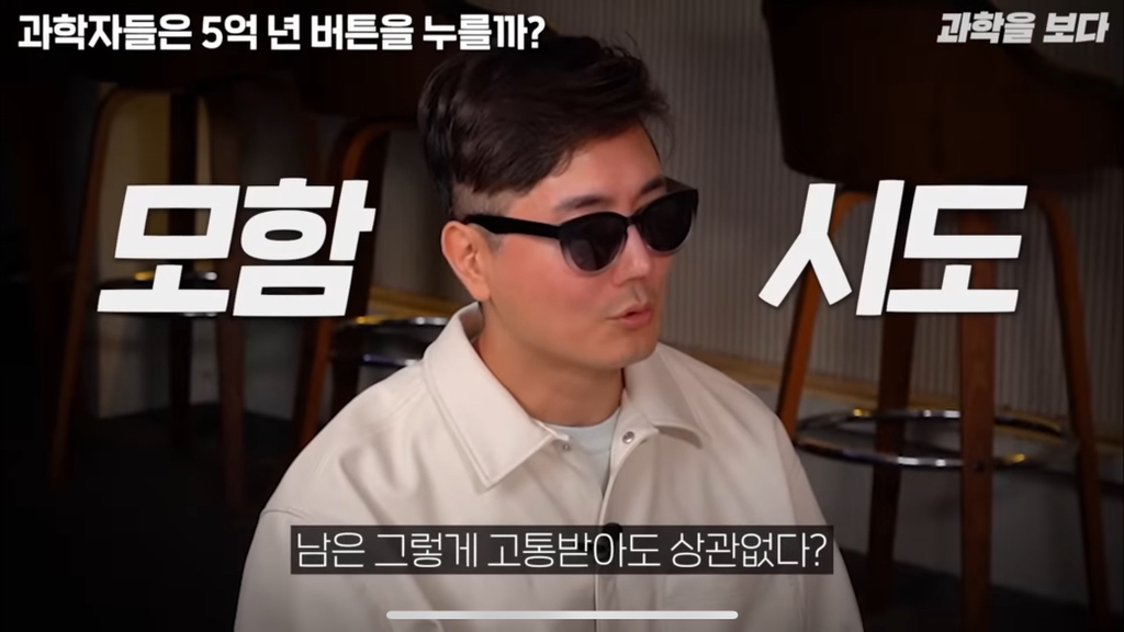 5억년간 보내지는 존재를 아예 없는 세상의 존재로 볼거냐 나로 인해 희생되는 타인으로 볼거냐의 차이인듯??