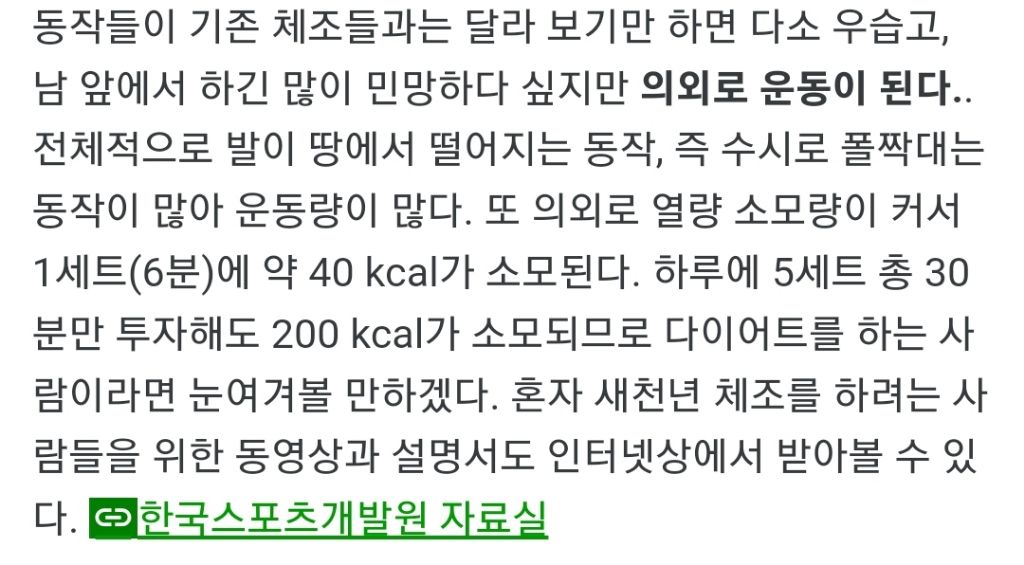 작성자달조각을 주우러 숲으로 가자 작성시간 23.06.27 청소년 체조랑 국민체조는 얼마나 될까..🤔