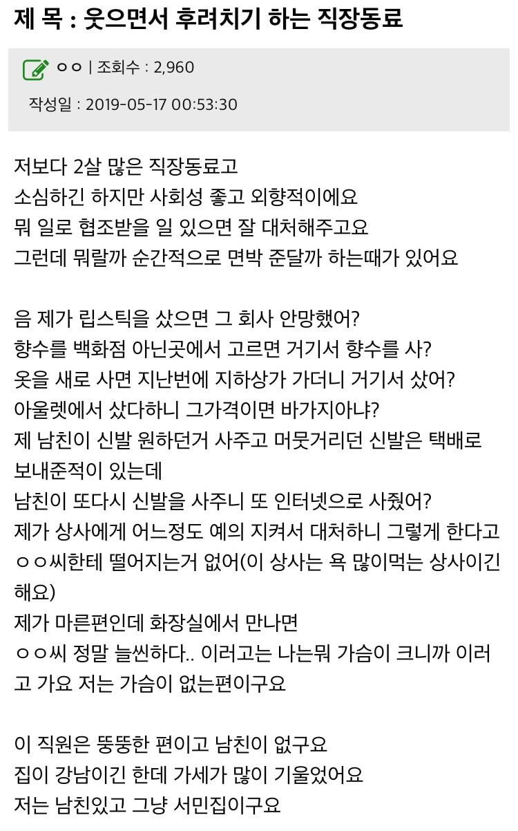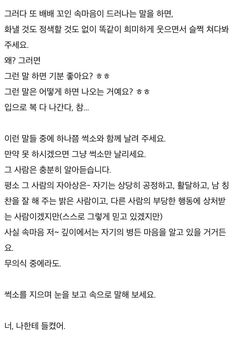 작성자념냠념냠냠 작성시간 23.10.18 저거 진짜 숨쉬듯에 하는 사람 있어 ㅋㅋㅋㅋㅋ 걍 마음 지옥일듯..ㅎㅎㅎ 심지어 좋은일 생긴거 알고 주말내내 부득부득 이갈다가 월요일에 보자마자 와다다 쏟아내기도 함..ㅎㅎ
