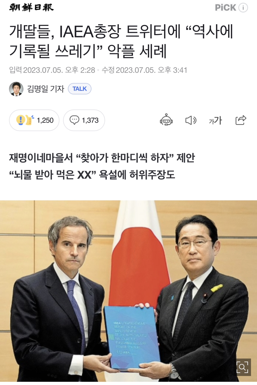 조선왜보 기사임. 들어가서 봐 줄 필요도 없음