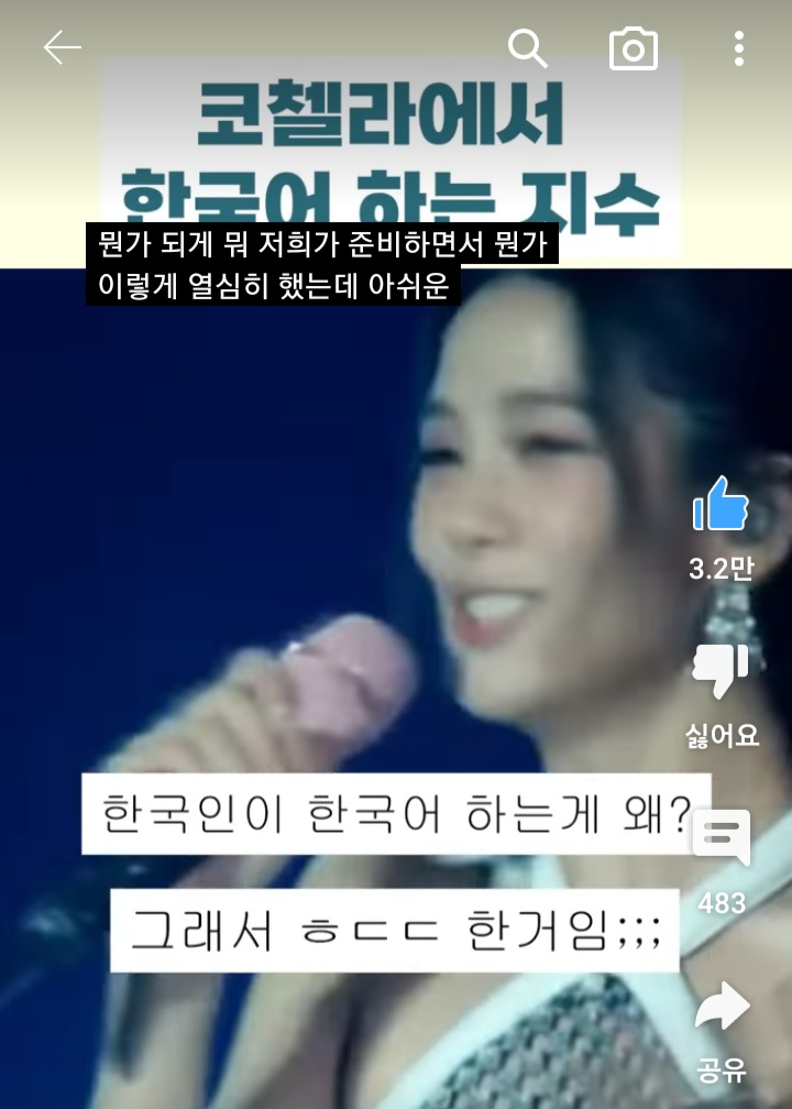 작성자으랴아아아압 작성시간 23.07.07 글로벌 그룹이지만 근본은 케이팝 그룹이라는 정체성을 지켜주는 역할이기에 지수가 너무 중요한 역할을 한다고 생각..!!