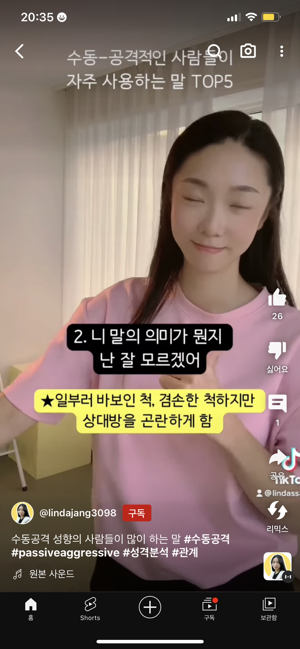 작성자약한나는나도원치않는다 작성시간 23.07.09 헛 맞아.. 저거 내가 싫어하는 사람이나 공격하고 싶은 상황에서 일부러 쓰는 방법임… 특히 회사에서 주어 없이 지시 이상하게 하는 상사한테 2번 개많이씀..