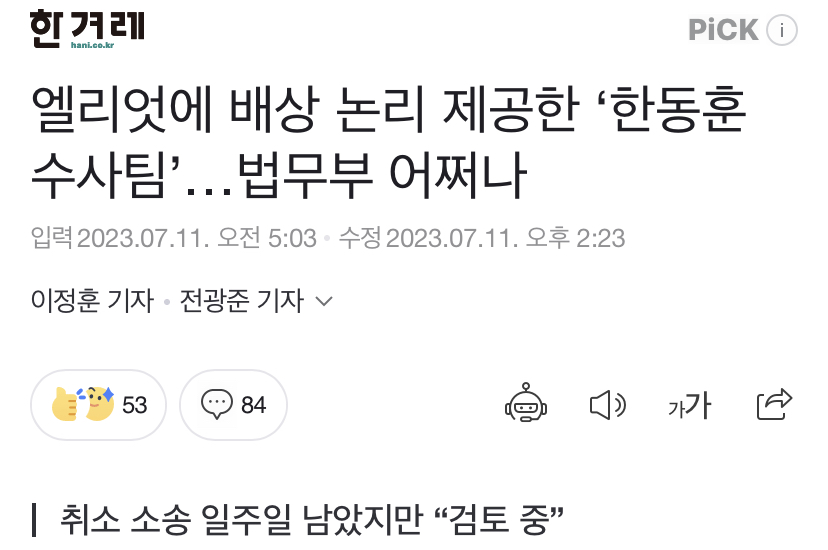 [여시뉴스데스크]엘리엇에 배상 논리 제공한 ‘한동훈 수사팀’…법무부 어쩌나 작성자소리앙|작성시간23.07.11|조회수884 목록 댓글 1 글자크기 작게가 글자크기 크게가 출처 : https://naver.me/xzLoyewv엘리엇에 배상 논리 제공한 ‘한동훈 수사팀’…법무부 어쩌나법무부가 엘리엇에 690억원(법률 비용 제외)을 배상하라는 국제투자분쟁(ISDS) 판정에 대한 불복(취소 소송) 시한을 불과 일주일(17일) 남겨두고서도 여전히 입장을 정하지 못한 것으로 알려졌다. n.news.naver.com전문출처 다음검색 현재 게시글 추가 기능 열기 북마크 공유하기 신고 센터로 신고 댓글 댓글 1 댓글쓰기 답글쓰기 댓글 리스트 작성자주먹왕 랄프로렌 | 작성시간 23.07.11 가발 지켜본다 ㅡㅗㅡ 댓글 전체보기