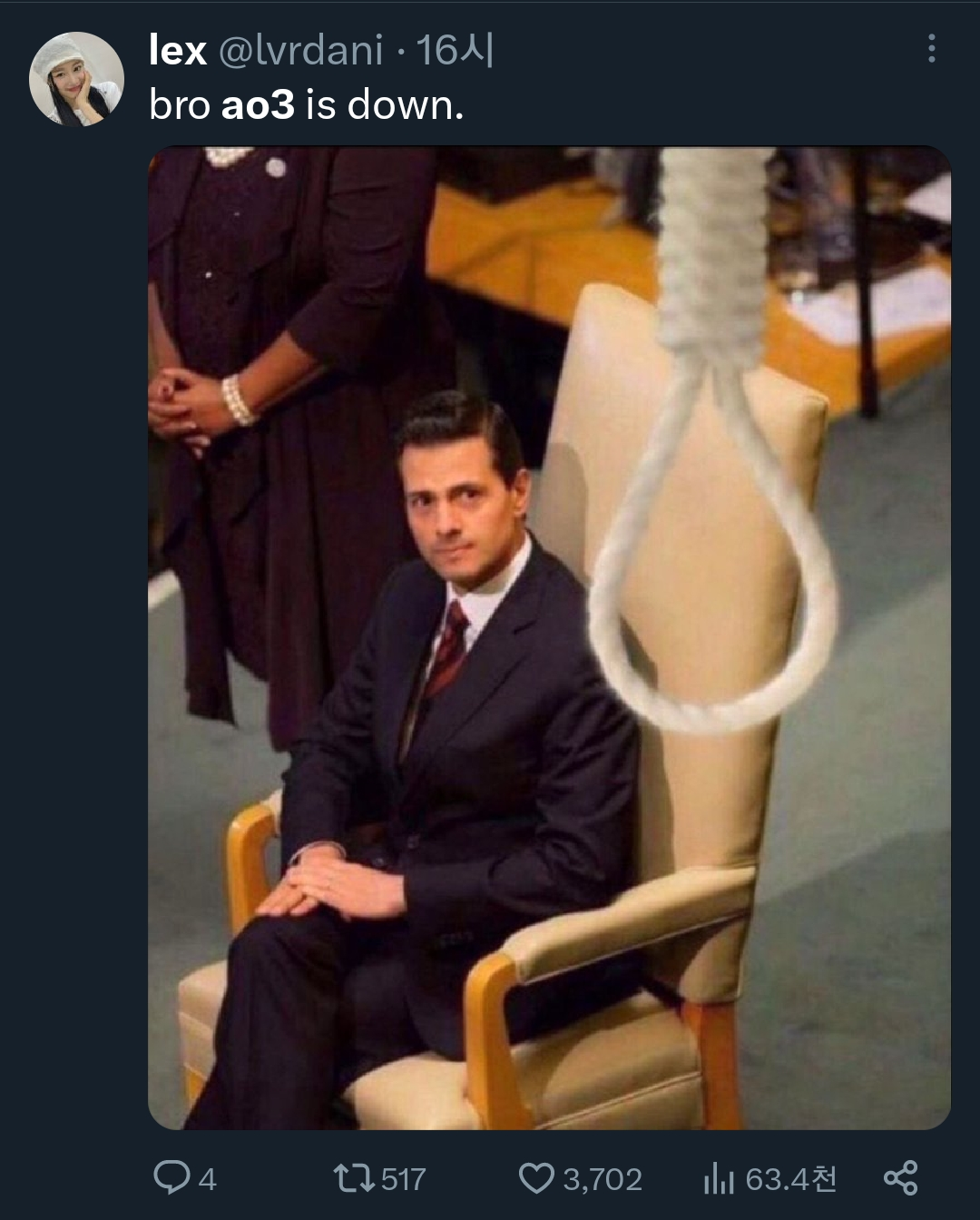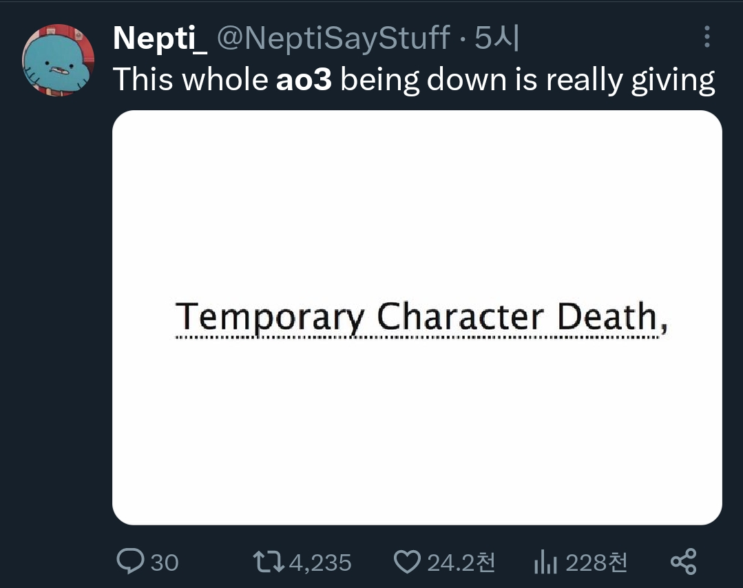 아오삼 터진거 완전 [일시적인 캐릭터 사망] 같다 (아오삼에서 픽 태그임)