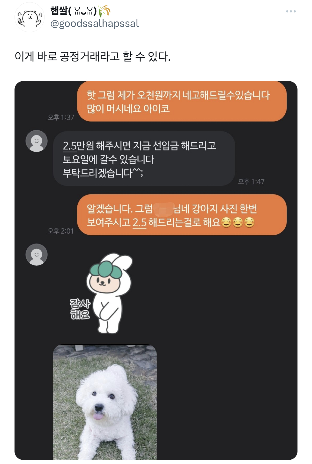작성자수미가 작성시간 23.07.12 강쥐랑 거래한다고 했어야지