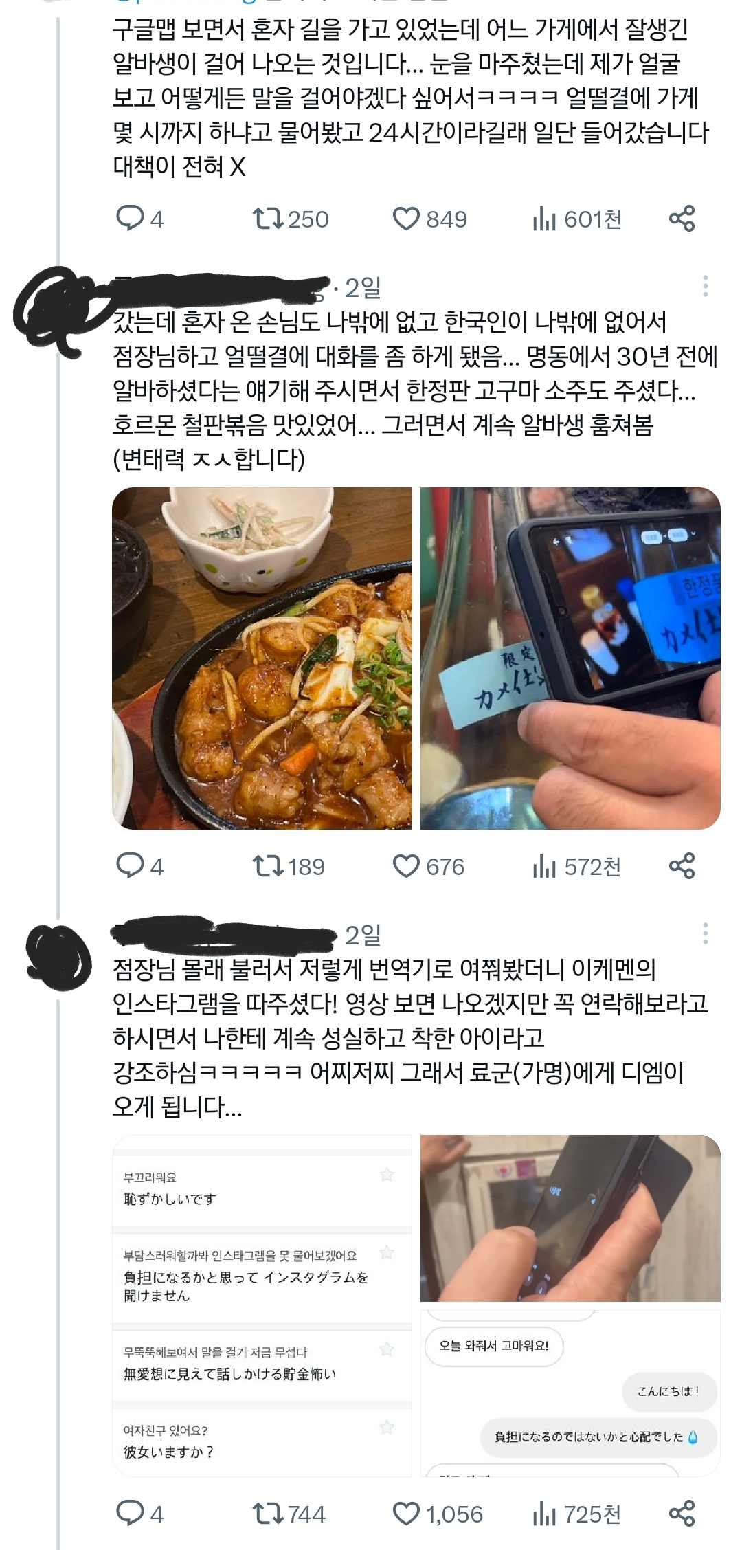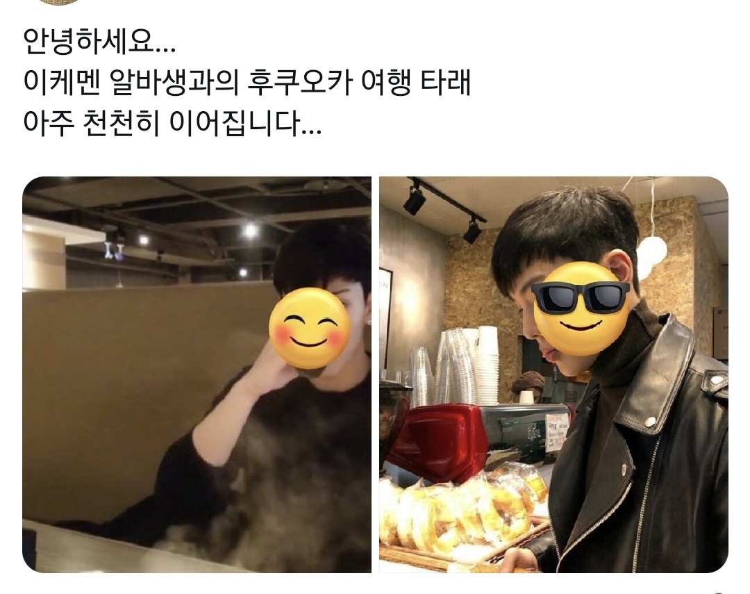 그 이케멘 알바생의 얼굴이 가려진 사진들이 드문드문 있는 게