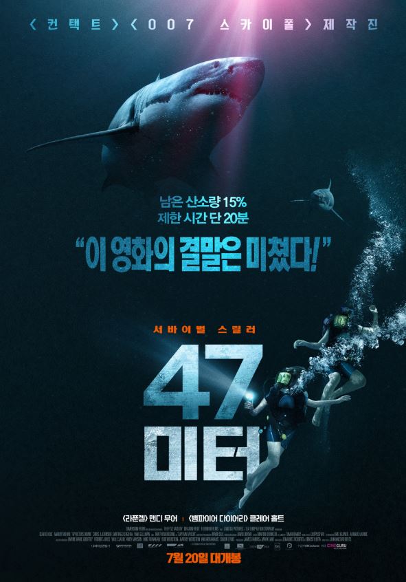 비슷한 상어 영화로 <언더워터>도 재밌는데 이 영화를 추천하는 이유는 심해에서 탈출해야 하기때문. 진짜 숨막힘
